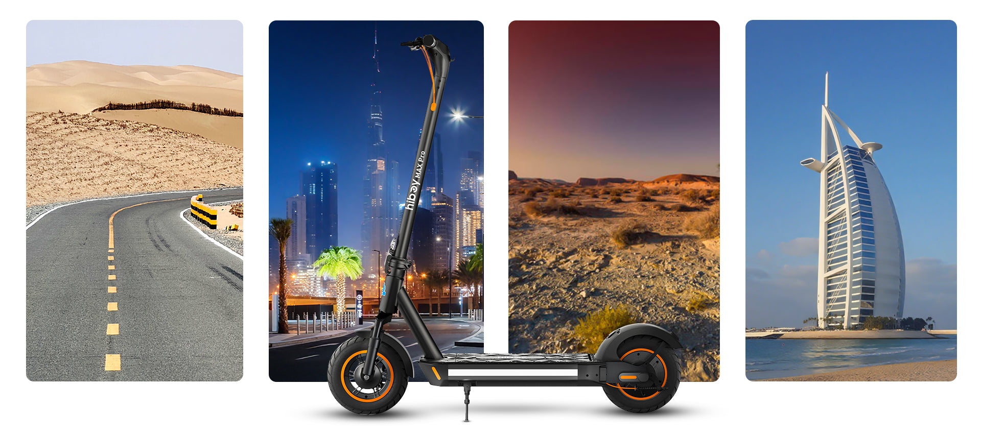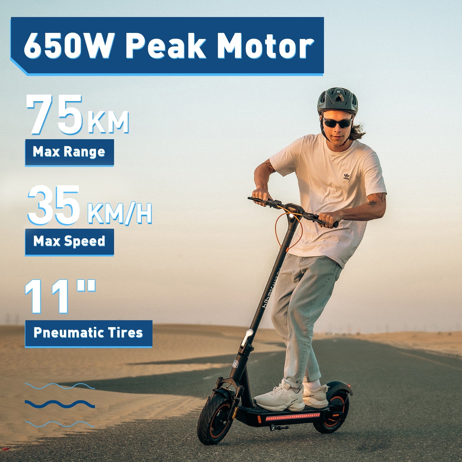 يرجى ملاحظة أن أقصى مسافة تُقاس في حالة عدم وجود رياح، وعند درجة حرارة 22 درجة مئوية، يكون السكوتر مشحونًا بالكامل للقيادة بسرعة ثابتة تبلغ 18.4 كم/ساعة (11.4 ميل/ساعة) على سطح بحمولة 75 كجم. يختلف عمر البطارية الفعلي باختلاف عوامل مثل الحمل، والرطوبة، وسرعة الرياح، وعادات التشغيل، إلخ.