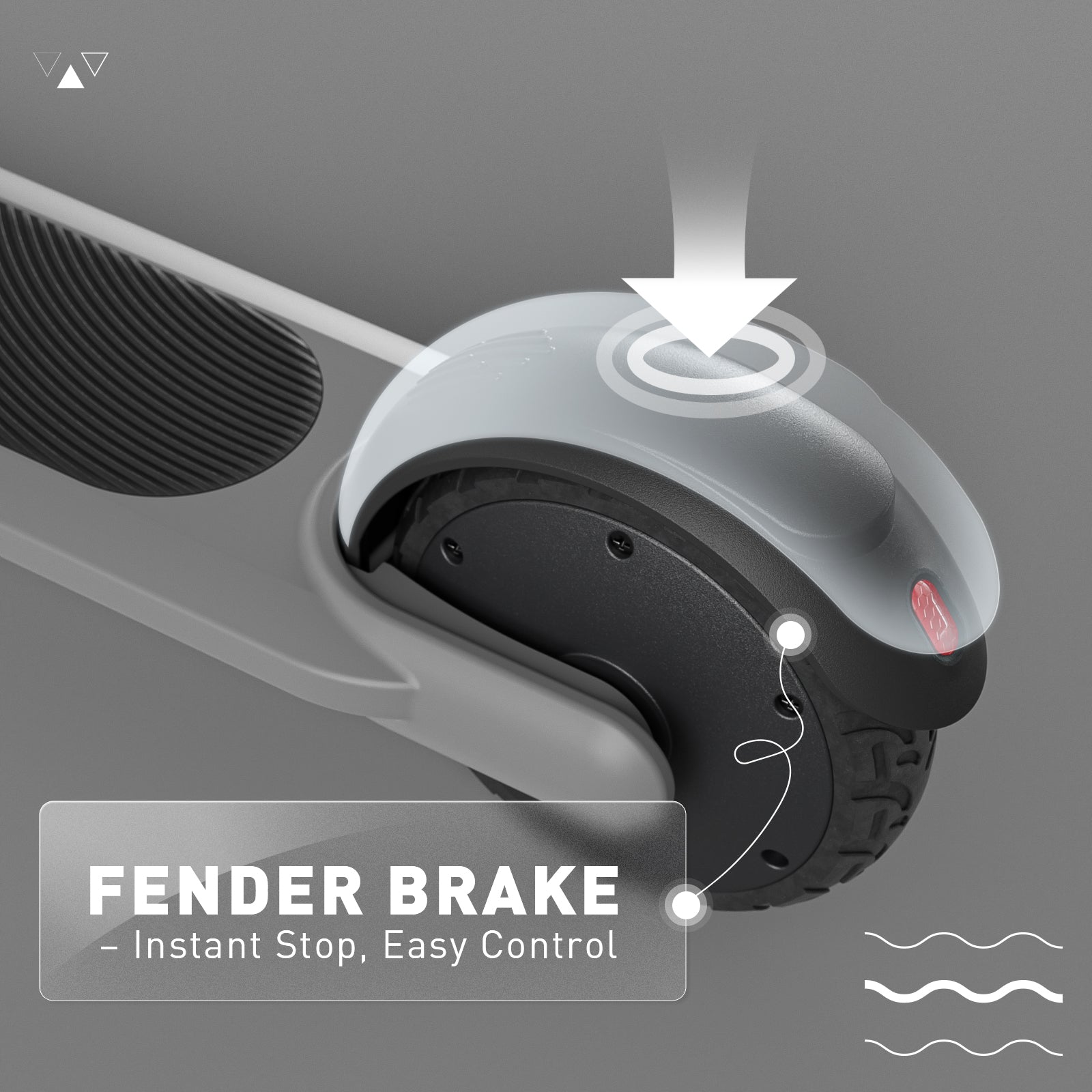 Step on to start, glide to 3.2km/h to reach 8.05km/h, tap the mudguard to brake, and it auto shuts off with a beep after 10 seconds!