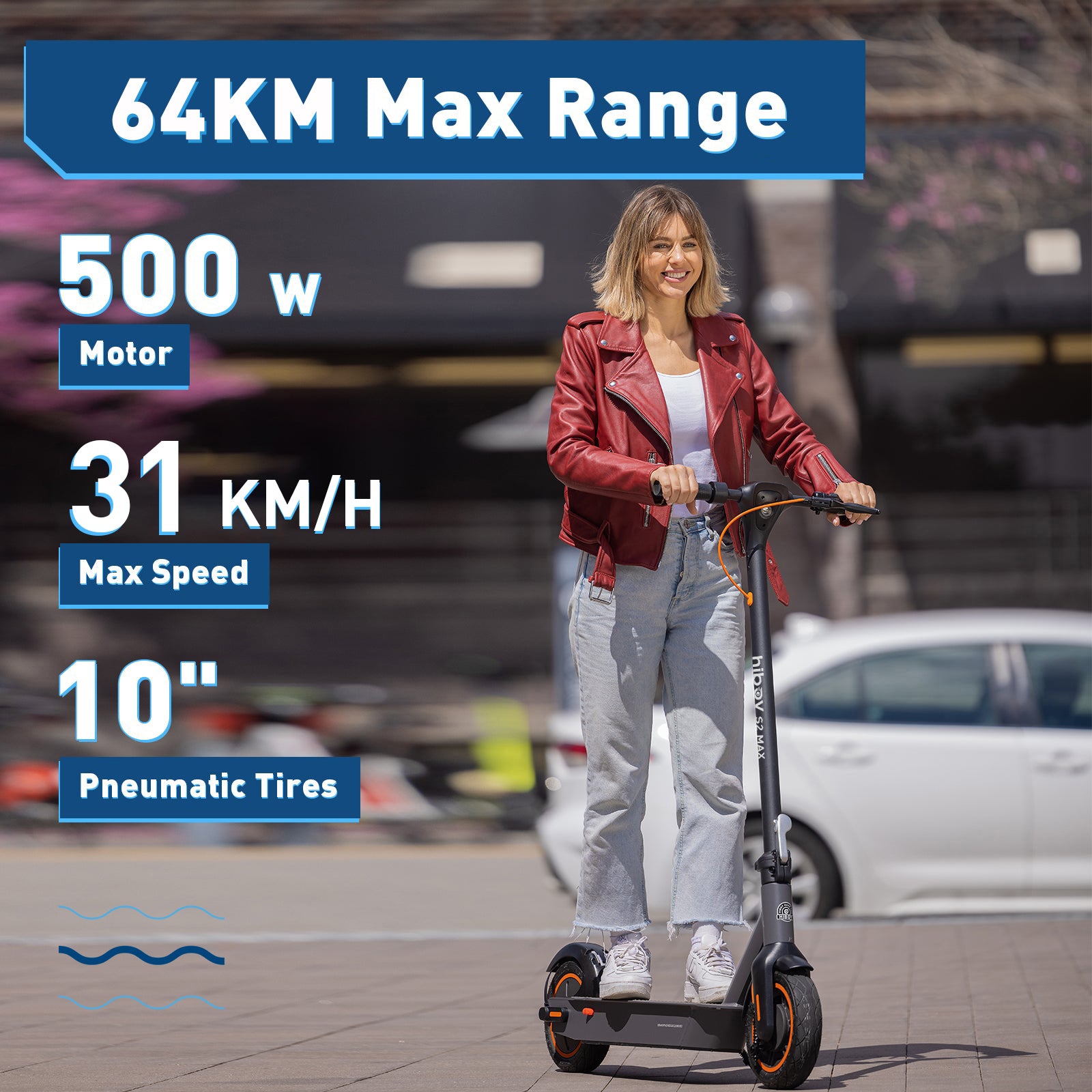 Smooth 10-inch pneumatic tires to absorb bumps, ensuring max comfort, max road 100 kg.